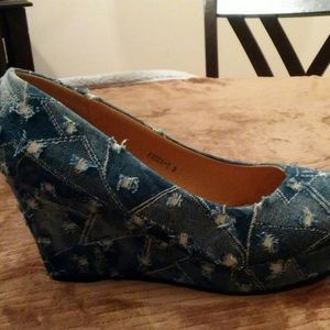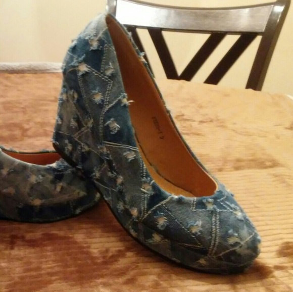 Nice denim wedge heel. Ready for your closet. They Would look look great on you!!