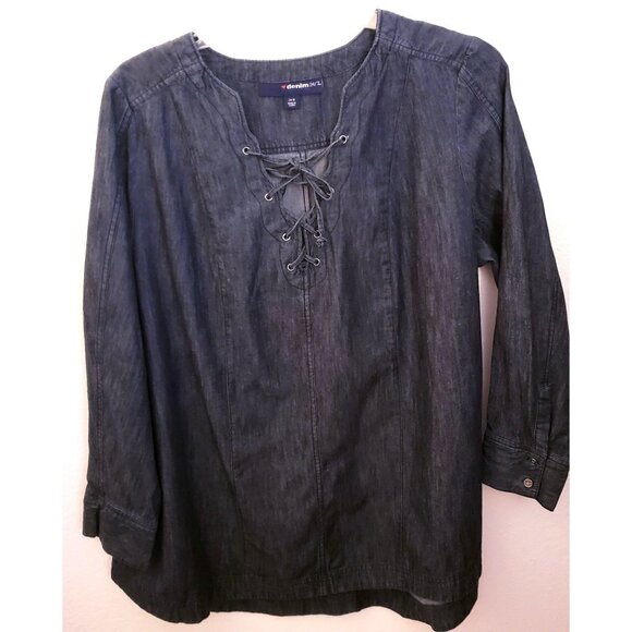 Denim247 Dark Wash Denim Lace Up Neckline Long Sleeve Tunic Size 24W EUC
