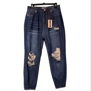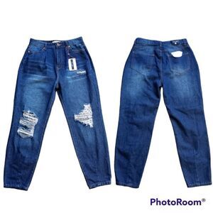 Denim Blvd Los Angeles Distressed Mom Jeans size 5 Dark Wash Blue NWT