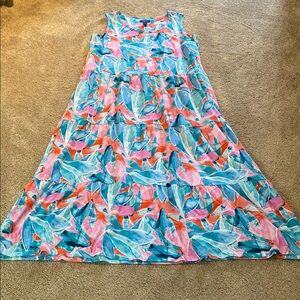 Denim&Co Beach Sleeveless Tiered Multicolor Scoop Neck Cotton Linen Dress Sz XL