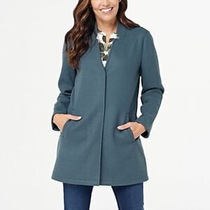A simple faux-wool coat polishes your look in seconds. This one has a notched collar and hidden snap closure for a refined feel. From Denim & Co.® Fashions.
