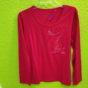 Denim&Co Red Long Sleeve Blouse with Round Neckline