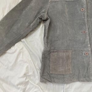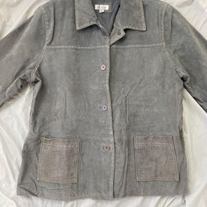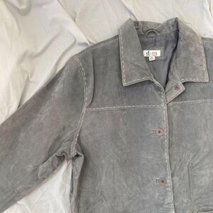 Denim&Co Vintage Light Gray Accent Stitching Suede Tailored Leather Jacket XL