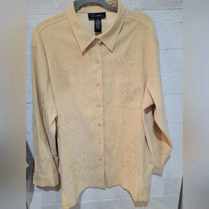 Denim&Co Womens 1X Button Down Long Sleeve Shirt Embroidered Pale Yellow Fair