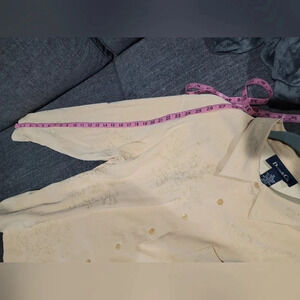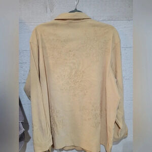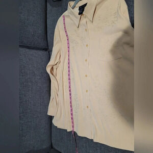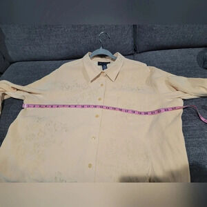 Denim & Co Womens 1X Button Down Long Sleeve Shirt Embroidered Pale Yellow Fair