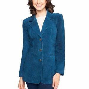 Denim&Co Washable Suede Jacket Blazer Mallard Blue