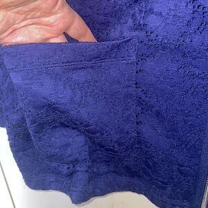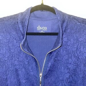 Blue Denim & Co. eyelet jacket. Zipper up the front. Two pockets. Excellent condition and a beautiful blue!