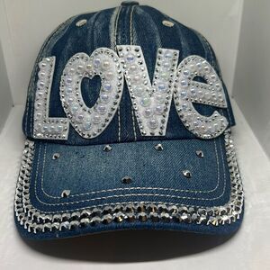 Denim Rhinestone LOVE Baseball Cap