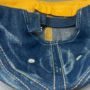 • Denim cap with rhinestone and pearl embellishments