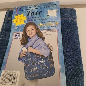 Pre-owned in new unused condition. Stone washed denim tote bag is 13w×11hx 3d.