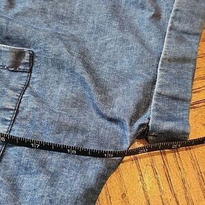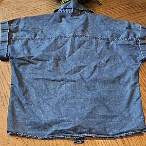 Denim tie front button down size M, top has a distressed look in the back, pics shown