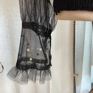 Denimland Cat Sweater With Pearl Sleeves