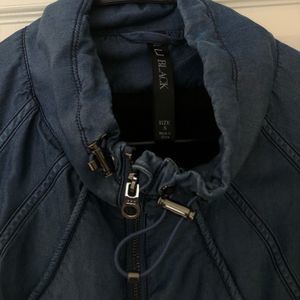 Medium weight jacket- nice for a fall day or summer night 💫 Never worn - in great condition Looks like denim but is not Zip up closure and pockets
