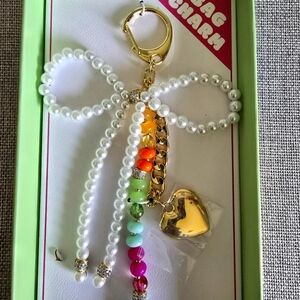 Denis & Charles Rush Faux Pearl Rhinestone Gold Chain Heart Bag Purse Charm