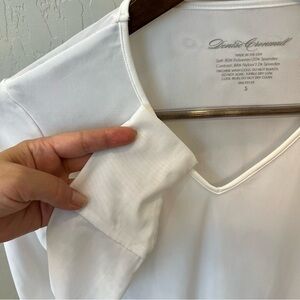 Denise Cronwall double layer mesh top, white, long sleeve, V neck, size S, NWOT