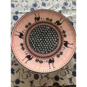 Denise Ford is a unique artist working on low fire lead free ceramics. She is represented by the Pacific edge gallery in Southern California. Her original artwork platters sell for about $795 new this one is absolutely stunning in a beautiful pink with black and green with a camel and palm tree motif. Since the glaze is leadfree, this is usable for food. Stunning and collectible this was created and signed in 1991 . A beautiful addition to your home .