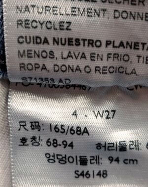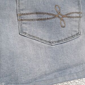 Light wash, zip & button closure, small cuff, cotton blend, waist 27 inseam 3" length 12"