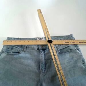 Condition: Good gently used condition. Some minor distressing and ripped details on both front legs. Cuffs show intentional unfinished fraying. No large stains or holes other than the designed distressing shown in photos.