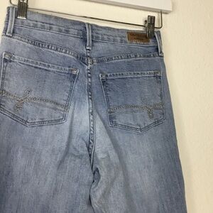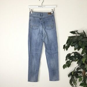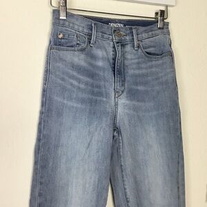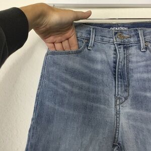 A pair of high rise mom style jeans. All real pockets and belt loops. Loose fitting and high waisted.
