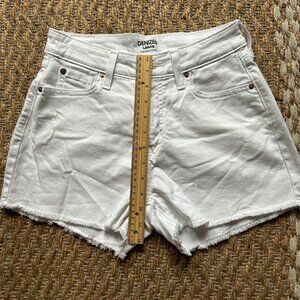 Denizen from Levi's high rise white denim shorts. Frayed hem. Size 4/ waist 27. Preloved and in great condition- please see photos for signs of wear/ wash/ details.