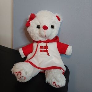 Denmark White/Red Stuffed Animal Bear 9in