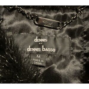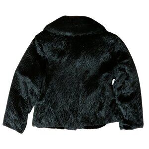 Dennis Basso Black Faux Fur Jacket M Cropped Collared Button Front Pockets