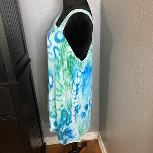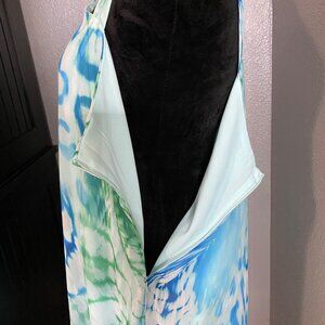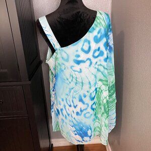Dennis Basso Blouse Size 18W One Shoulder Asymmetrical Top Blue Green Flowy Chic