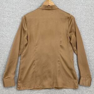 Dennis Basso Blouse Womens Extra Small Brown Silky Button Up Long Sleeve Ruffle