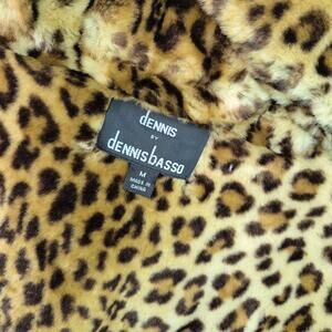 Dennis Basso Brown Gold Leopard Reversible Zip Front Faux Fur Coat Jacket NEW Tagged Size Medium