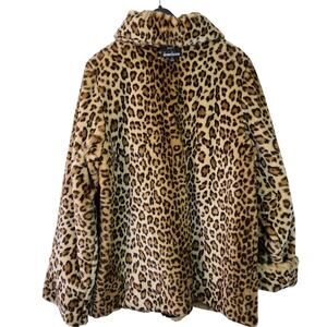 Dennis Basso Brown Gold Leopard Reversible Zip Front Faux Fur Coat Jacket NEW Tagged Size Medium