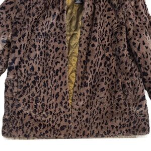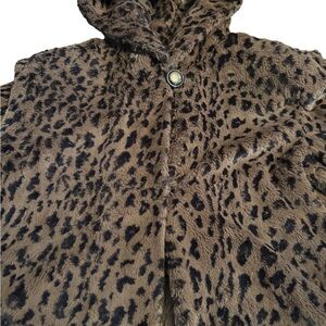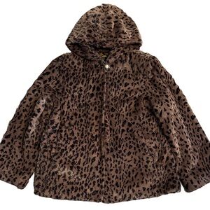 This Dennis Basso fur jacket combines style and comfort with its plush faux fur texture and integrated hood. The brown and black color scheme adds a chic touch, making it a standout piece in any wardrobe. Its relaxed silhouette ensures a cozy fit, perfect for casual outings.