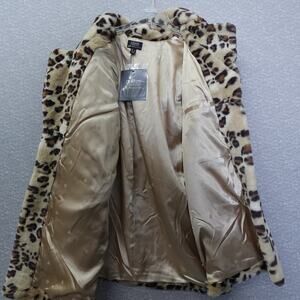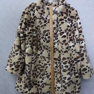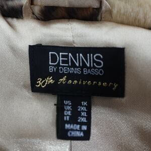 Dennis Basso Cheetah Faux Fur Coat Womens Jacket Notch Collar Crossover Lapel 1X