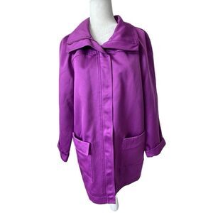 Dennis Basso Coat Purple Pockets Zip Up SZ M