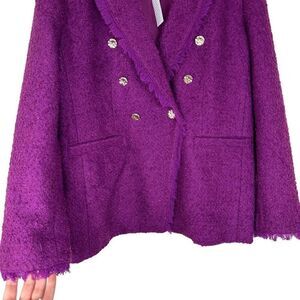 Item: Dennis Basso Double Breasted Purple Tweed Blazer Womens 12 NWT Modern Career