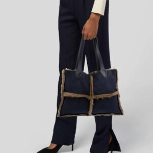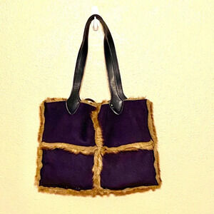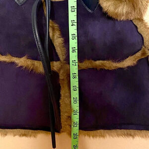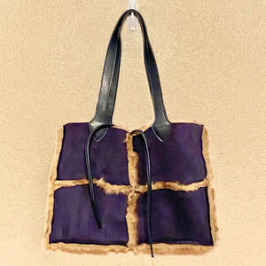 Dennis Basso Faux Suede Faux Fur Shoulder Bag Blue Tie Closure. This beautiful bag is lined with luxurious faux fur lining and is perfect for the fall/winter season!