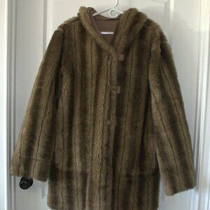 Dennis Basso Faux and Faux Suede Reversible Hooded Coat size Large