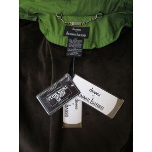 This Dennis Basso coat offers a refined balance of style and functionality. The vibrant green outer shell is accentuated with brown piping details, creating a sophisticated contrast. Its belted waist enhances the silhouette, while the button-front closure adds a classic touch. A detachable faux fur vest lining ensures year-round versatility, keeping you warm and stylish through seasons. New with tags. May show minor defects in manufacture and decoration. Sash/tie will be in pocket. A line styling. May Have Loose Buttons. May Show Minor Defects in Manufacture and Decoration.