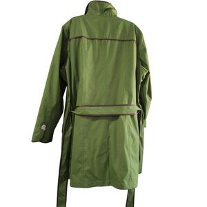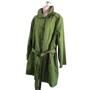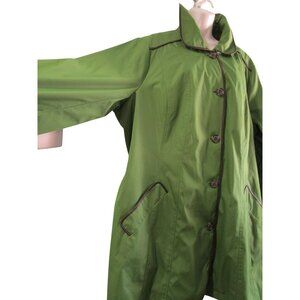 Dennis Basso Green A Line Trench Coat Brown Trim Zip Lining Ladies 2X NWT