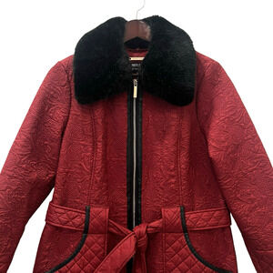 Dennis Basso Madison Avenue Embroidered Quilted Coat Red Belted Size Medium