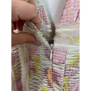 Dennis Basso Metallic Floral Plunge Gown Maxi Dress Formal Runway Evening Sz S