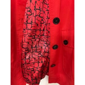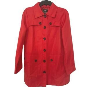 Dennis Basso Red Water Resistant Medium Length Rain Coat Size Small