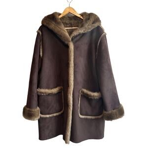 Dennis Basso Reversible Faux Suede and Fur Hooded Coat Brown M