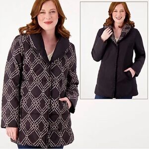 Dennis Basso Reversible Print to Solid Water Resistant Jacket