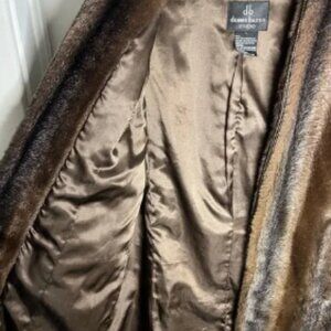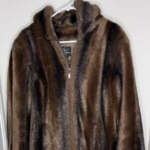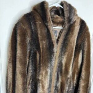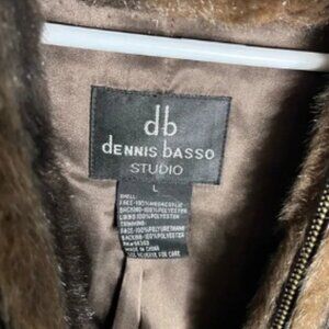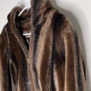 Chic faux fur jacket by Dennis Basso Studio. Brown striped pattern. Stylish and warm.