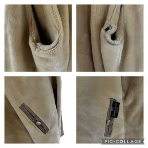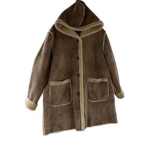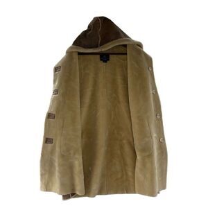 Dennis Basso Tan Hooded Faux Suede and Mink Fur Coat Jacket Size Extra Large XL
