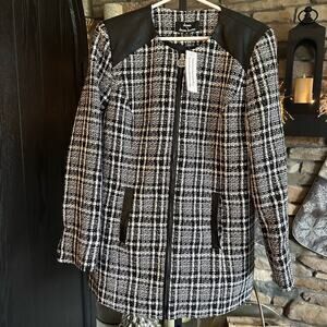Dennis Basso Tweed Zip Jacket Faux Leather Trim Size 10 Medium Pine Combo NWT