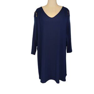 Dennis Basso Womens 3X Navy Cold Shoulder Tunic Dress W/ Gold Zipper Accent Poly
