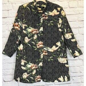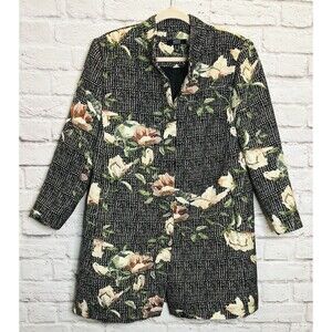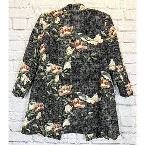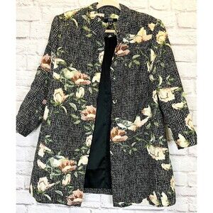 Dennis Basso Womens Size 16 Jacket Coat Woven Brocade Floral Black Snap Front