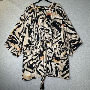 Dennis Basso Womens Size 3X Beaded Neck Caftan Tie Waist Pockets Black Gold
