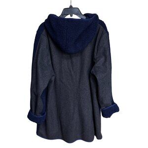 Dennis Basso XL Mixed Media Coat Hood Navy Gray Wool Blend Athleisure Chic Comfy
